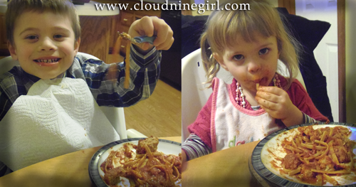 Last night at dinner, I fixed one of my family’s all time favorites, spaghetti and meatballs. My husband and I tried to review a few brief tips for eating spaghetti at the table, but I have to just throw it out there, Kids + Spaghetti = One Giant Mess.
