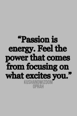 I’m thinking about passion today for this main reason: when we love what we’re doing, and we’re passionate about the outcome or steps in our day-to-day activities, our moods and attitudes are so much closer to the way we want to be. Also important to note, we spread that feeling to those we interact with, and by spreading a little of our passions and energy, we might possibly inspire someone else to begin to seek their passion or happy place in life, too.
