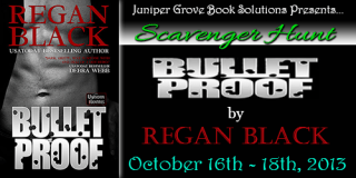 This is a different sort of scavenger hunt, a hunt for words to complete the excerpt of the novel, and a really great one at that, Bullet Proof, by Regan Black. So hop along to each blog, and collect all of your words. This is your chance to score a gift card from Amazon.com, check out some fun bloggers pages, and build a neat snapshot of the story…