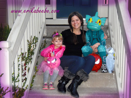 So here are the finished pumpkins and the finished costumes. My daughter as spider girl, with a headband of spiders I glued together myself. :0) My son? Gill Grunt, the latest and greatest action figure Skylander character.