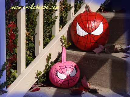 The first photo to the right shows our painting efforts. The wee one had to get every ounce of her white pumpkin from the core to the tip of the stem, bright pink.paintpumpkin