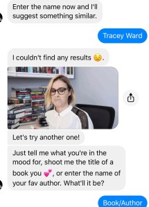 If you’re looking for a few past publishing chatbots to check out, I sampled Harper Collins Epicreads bot. I must say, it didn’t give me the books I was really hoping to get or hadn’t seen. Maybe I was expecting an instant book connection. I don’t know.
